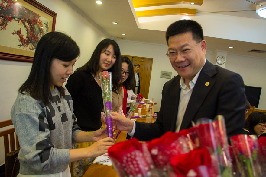 座谈会伊始,仲伟合以暖心笑脸赠鲜花,向女教职工致以节日的问候,“希望女教师们成为铿锵玫瑰、尽显风采”。他表示,女教职员工占据我校教职员工的“大半壁江山”,完成了超多60%的工作量,妇女节对我校而言尤为重要。同时,他体恤女教职工兼顾工作与家庭生活的不易,“希望能了解大家对工作、生活及学校建设的想法,改善大家的工作环境”。